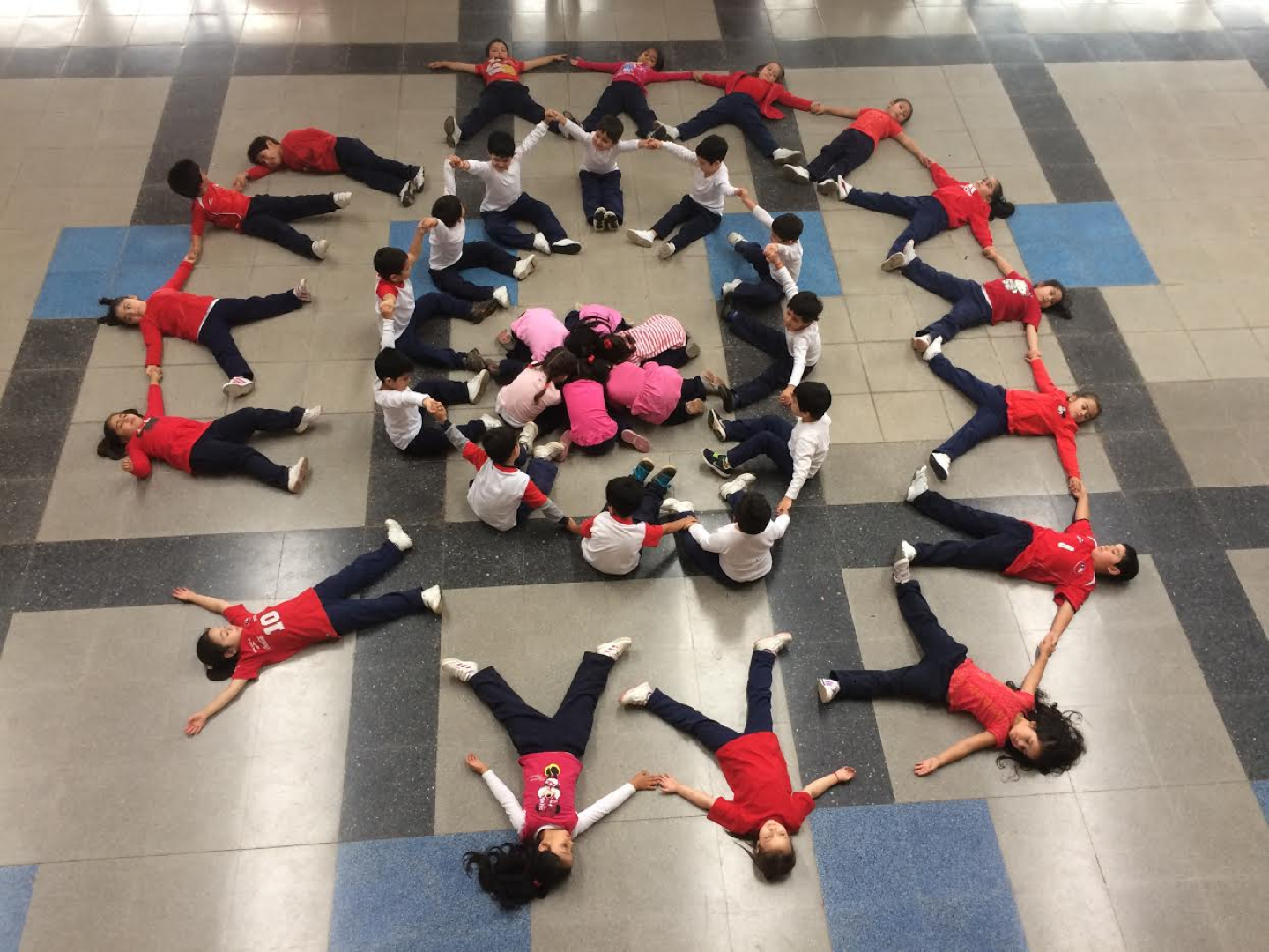 Fue así como los estudiantes de prebásica, con su entusiasmo y alegría formaron mandalas humanos, con la idea de promover el bienestar mental, mejorar las capacidades de atención-concentración y poder potenciar el trabajo en equipo.