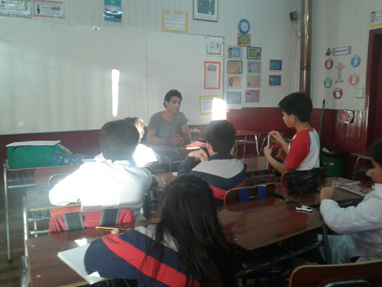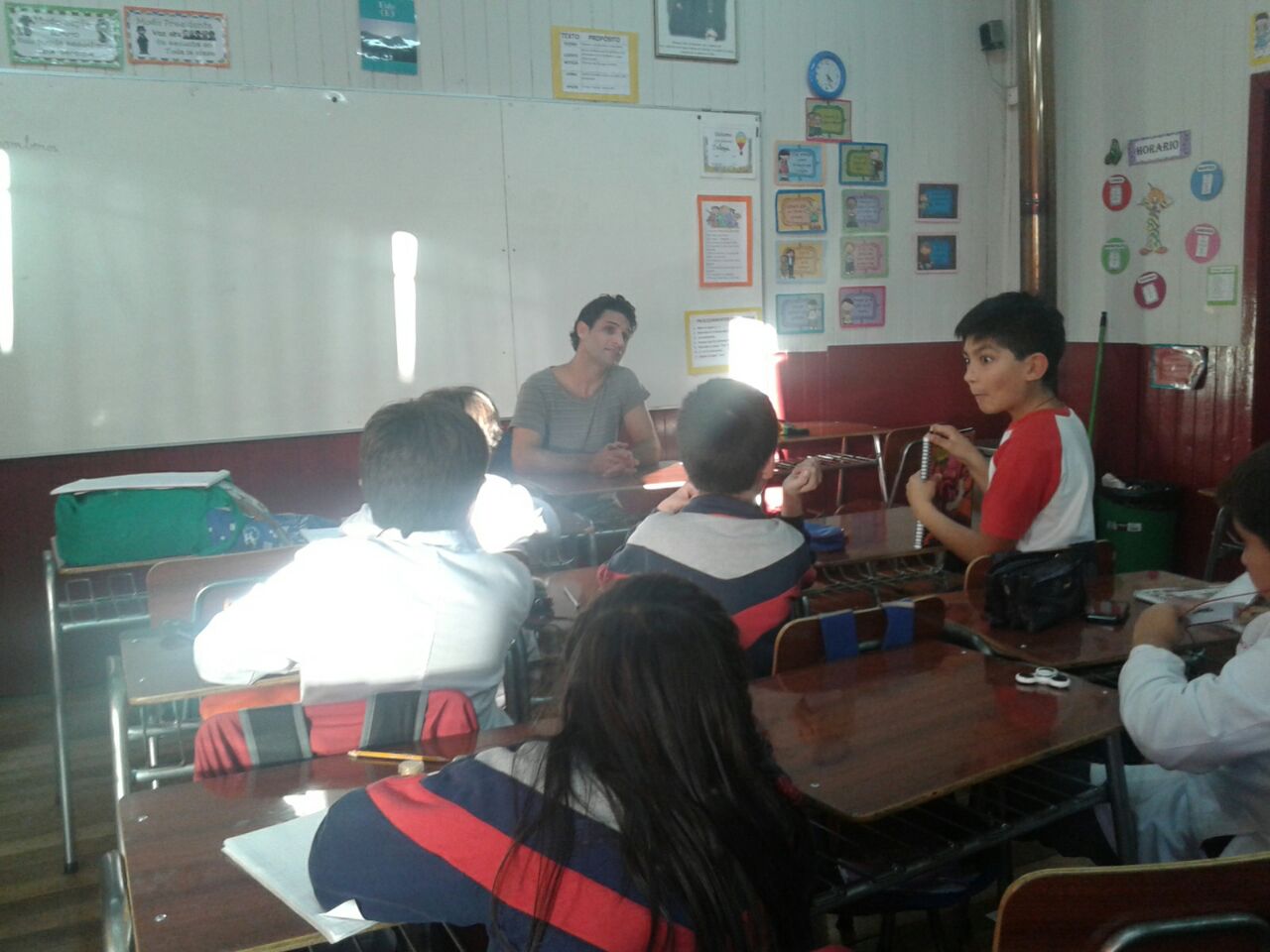 El taller Mega reporteros de la noticia del Colegio, logró entrevistar al actor argentino, quien señaló sentirse muy conforme con el recibimiento y aceptación de su obra en el establecimiento, en el cual mostró una pincelada de su arte, logrando muchas sonrisas en los niños.