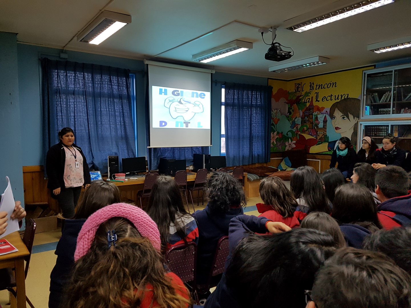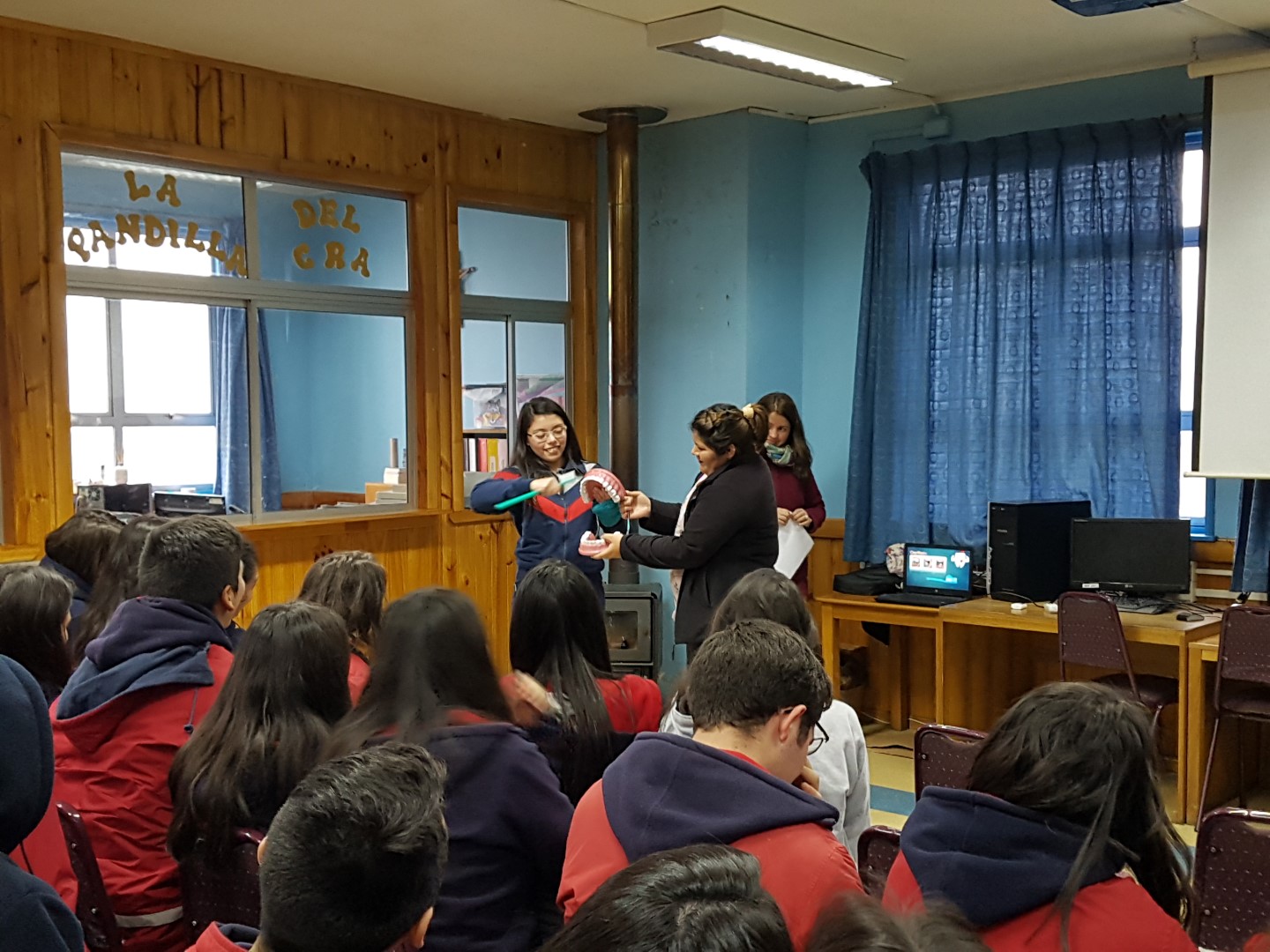 Paralelamente, se realizó una actividad informativa-práctica dirigida a los cuartos medios, en la cual se abordan el cuidado odontológico y las técnicas de Higiene Bucal, a cargo de la asistente dental Sonia Bañares Navarro