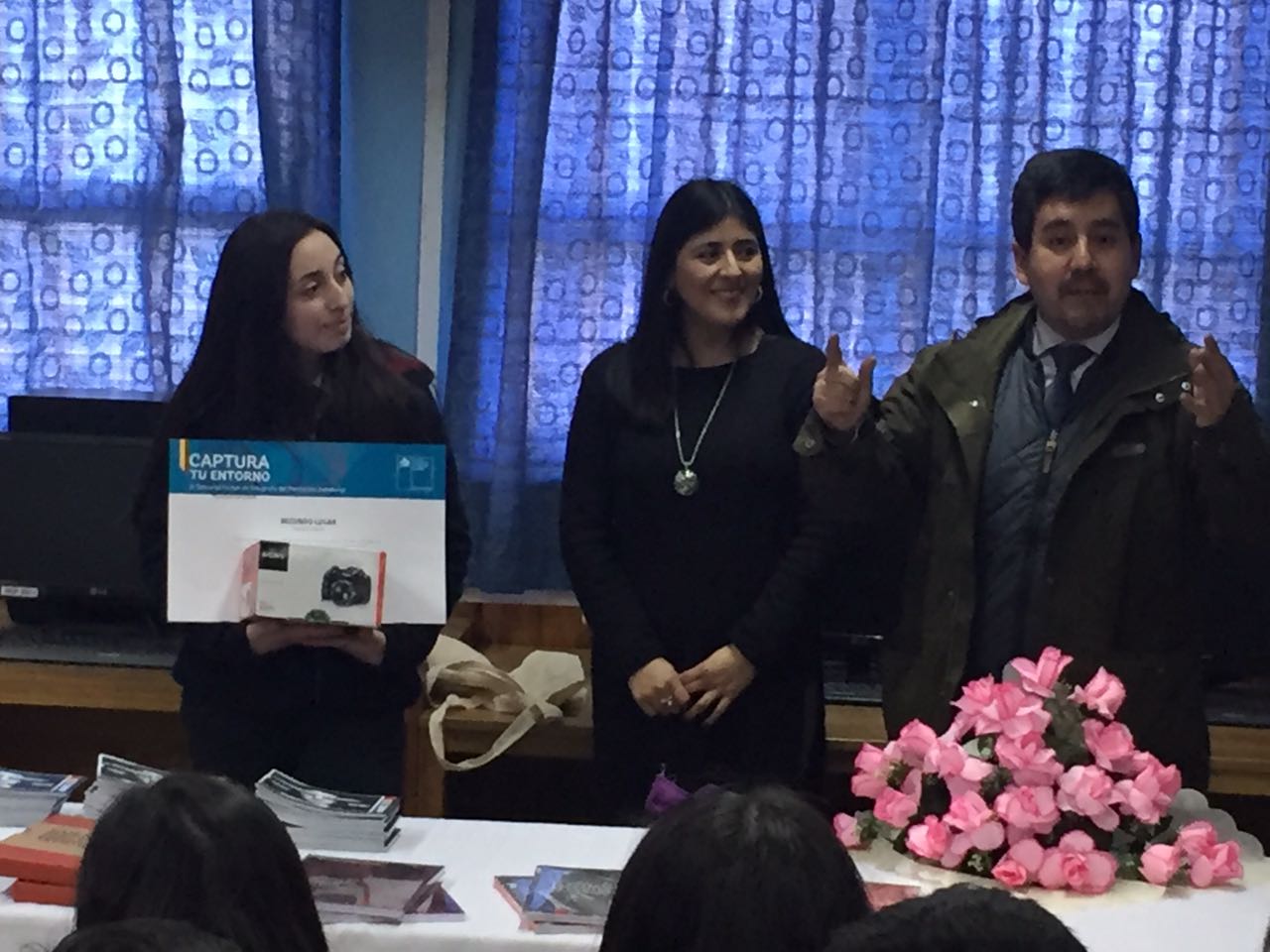 La ceremonia de premiación se realizó en Biblioteca de enseñanza media, el martes 22 de agosto, recibiendo Gabriela de manos de Evelyn Almonacid, Seremi de Cultura de la Región de Los Lagos, el diploma de ganadora del certamen, además de una cámara fotográfica. En medio del recibimiento del destacado galardón, Gabriela aprovechó de dar gracias al Colegio por el apoyo, especialmente al Profesor Javier Provoste, quien la ha ayudado, enseñado y asesorado en la fotografía.