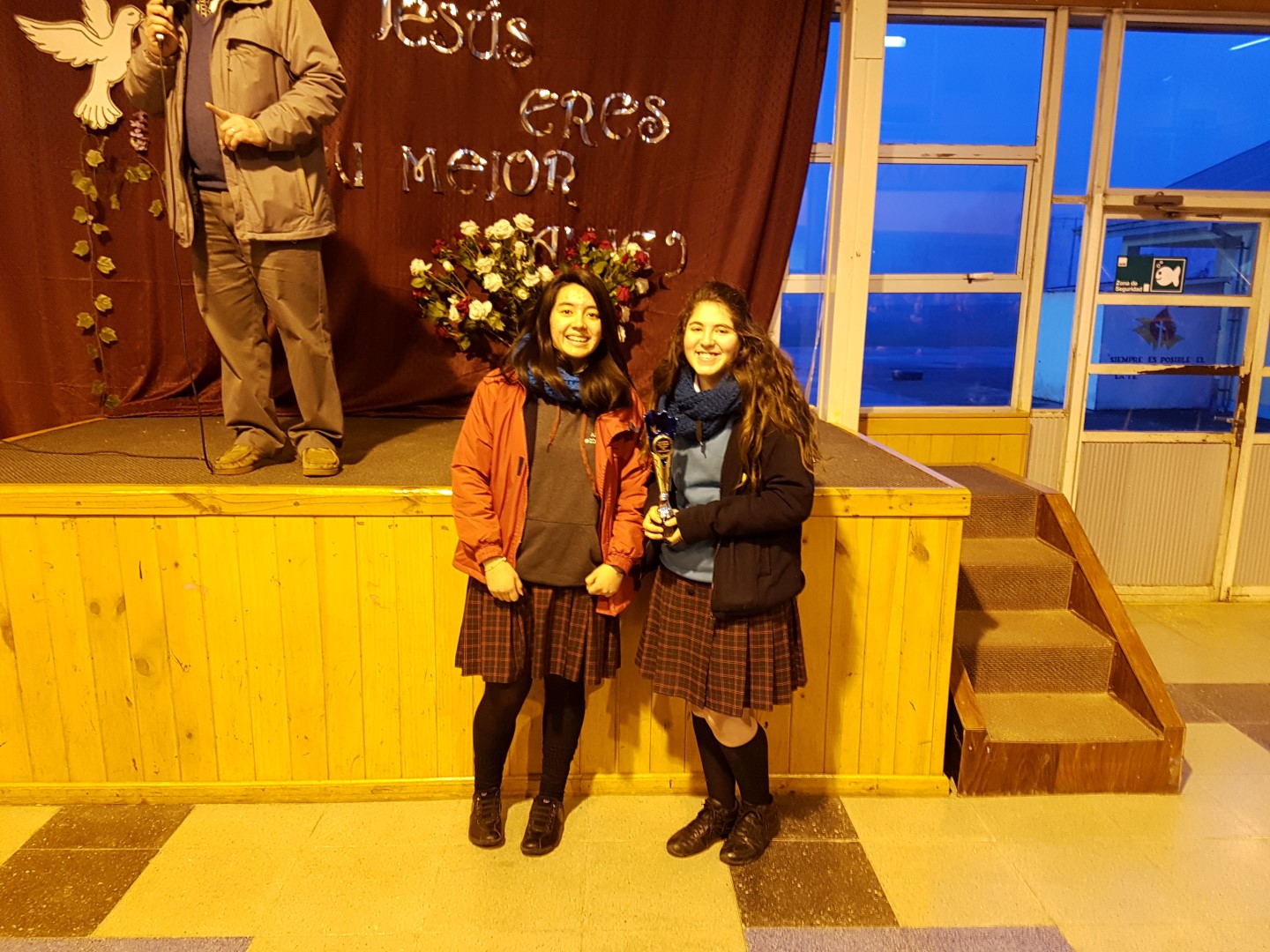Reconocimiento a Constanza y Andrea en la formación del viernes. En el centro, Constanza muestra la Copa del "Vive la USS 2017"