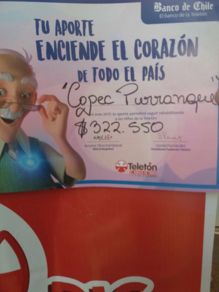 El Viernes y sábado en la estación de servicio de Copec Purranque un grupo de alumnos de nuestro Colegio hizo su aporte a la compaña Teletón 2017 pintando caras, autos, regalando globos y stickers. Lo recaudado, una suma superior a los 300.000 mil pesos, lo depositaron la tarde del sábado en la caja auxiliar del Banco de Chile.